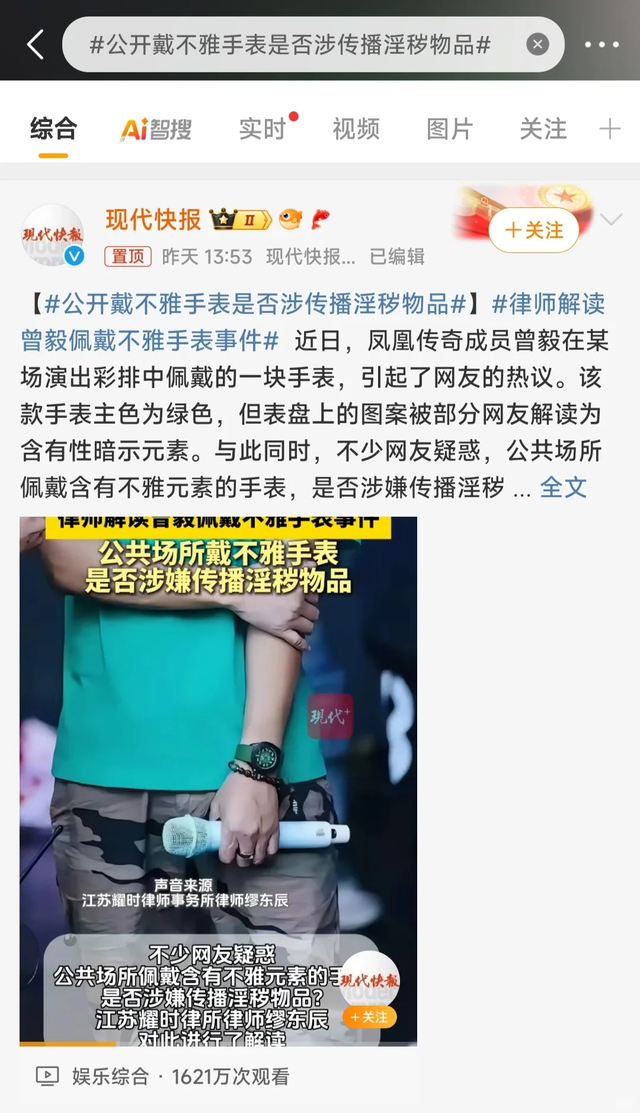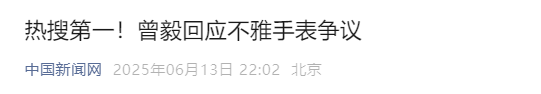 中国新闻网|热搜第一!曾毅回应不雅手表争议.2025