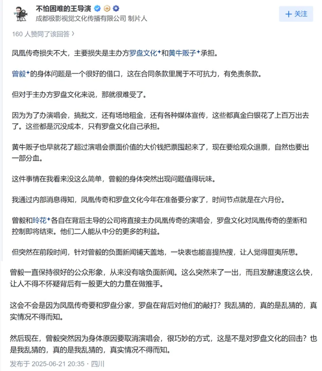 毕竟凤凰传奇刚在鸟巢6连开,风头正旺,再怎么说也不会自砸口碑。