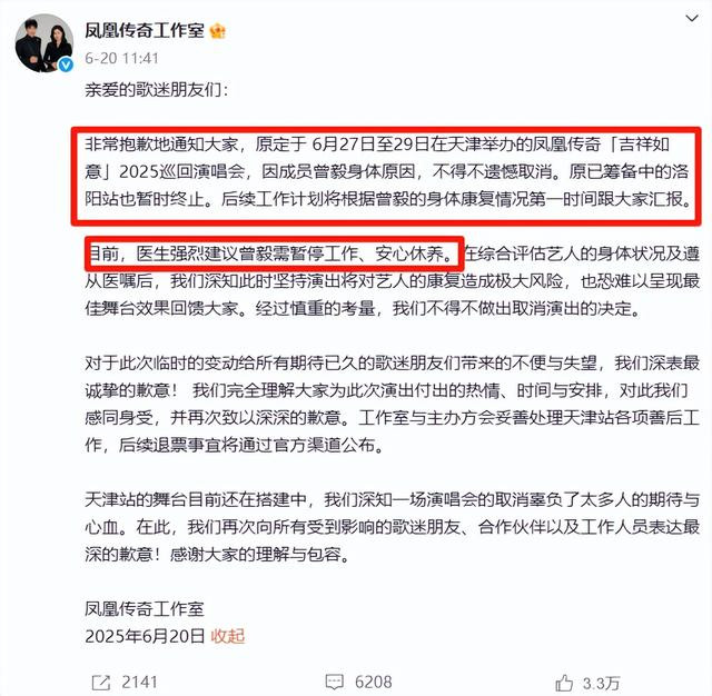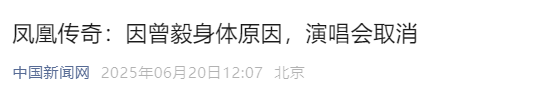 中国新闻网|凤凰传奇:因曾毅身体原因,演唱会取消.2025