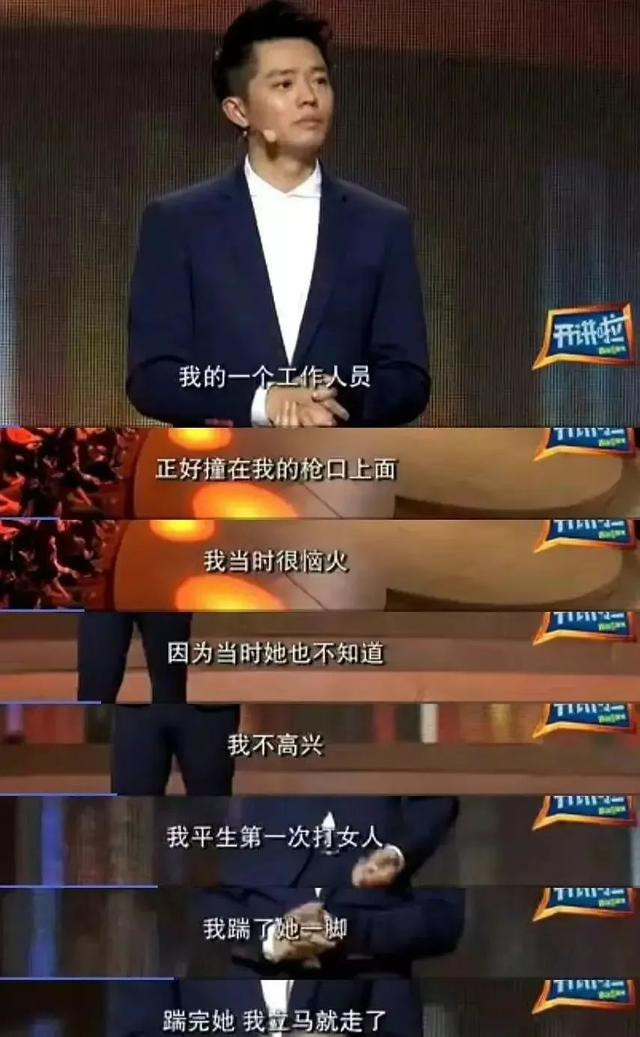 比如2014年他在节目上,主动提起自己曾踹过女员工。